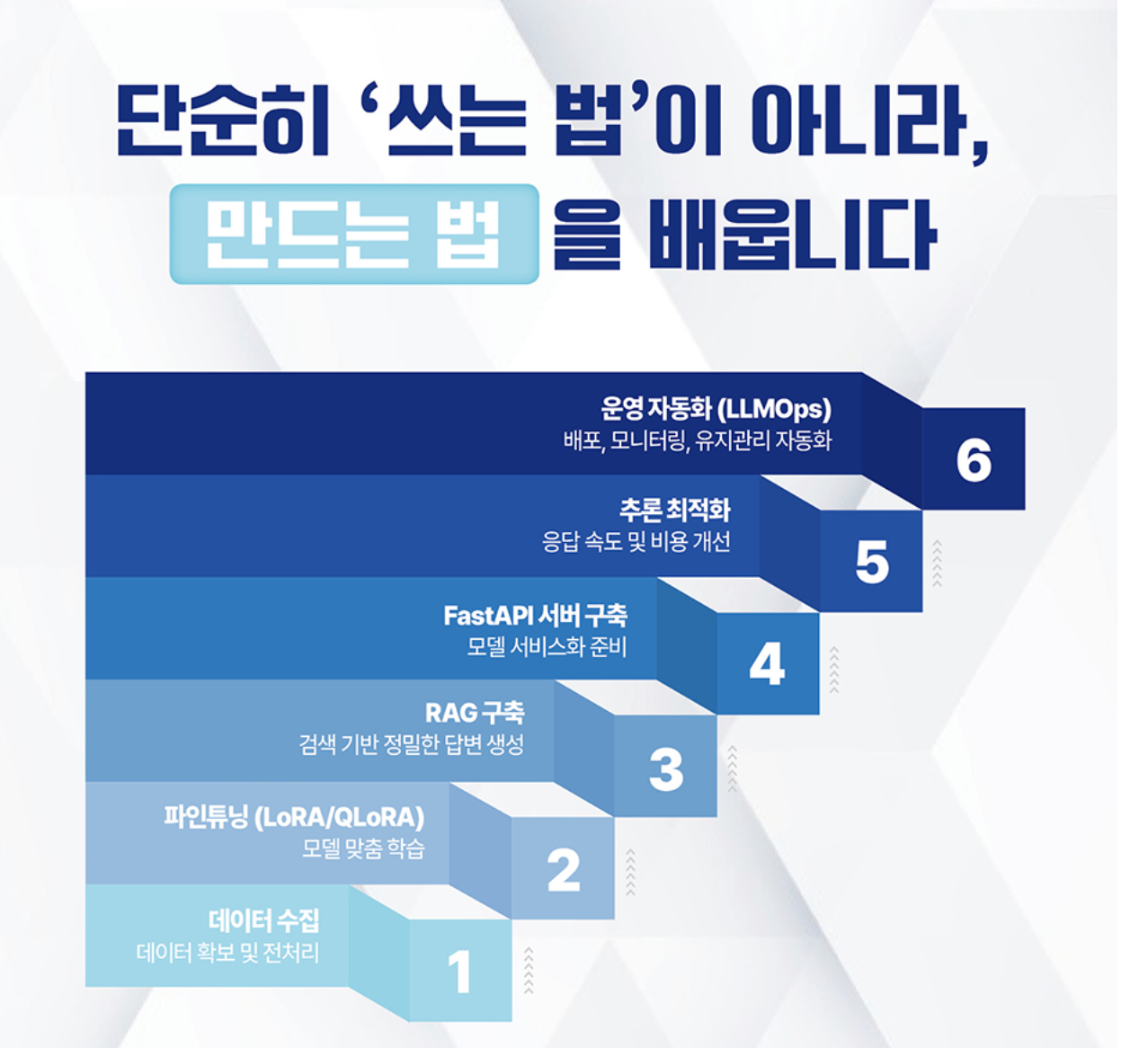 - LLMOps, 최신 RAG 구조, DPO, 양자화 추론 등 최신 기술 트렌드 반영
