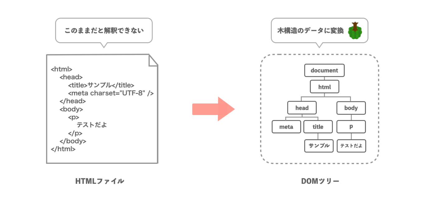서버가 보내준 HTML 를 바로 해석 할 수 없다. 구문 분석 한 후 메모리에 트리 형태의 데이터 구조로 변환함. 이게 DOM 트리임.